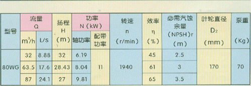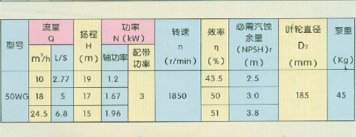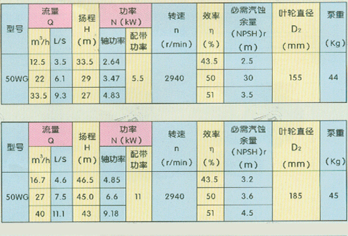 工作條件:W型離心式污水泵適于抽送80攝氏度以下的污水,糞便或含有纖維、紙屑、果品、魚類等固體懸浮物的液體,輸送團塊直徑不超過泵過流斷面小尺寸的90%。X型無堵塞污水泵適于抽送80攝氏度以下的污水、糞便、含有大固體顆粒和懸浮物的液體以及含有易產(chǎn)生纏繞或聚束的化纖物液體,允許通過的*大顆粒直徑達(dá)65毫米,特別適于抽送含有氣體(空氣)的液體,紙漿和活性污泥液體。